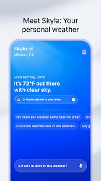 Skyla.ai é um aplicativo de previsão do tempo que se destaca por oferecer informações personalizadas e acessíveis. Com base nos dados confiáveis da 1Weather, o aplicativo utiliza inteligência artificial para transformar previsões em conselhos práticos, ajudando os usuários a planejar suas atividades diárias. Ao invés de apenas apresentar números, Skyla.ai responde a perguntas comuns sobre o clima de forma clara e direta, como se fosse um assistente pessoal.